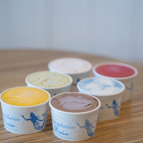 地域産の牛乳と天然塩を使った人気No.1フレーバー「九十九里の塩ミルク」は必ず含まれています。その他は、「いちごみるく」「キャラメルナッツ」「チョコレートブラウニー」などをはじめとする定番の人気フレーバーや、旬のフルーツやハーブを使った季節限定フレーバーのなかから、バランスよくおまかせでお詰めしてお届けいたします。