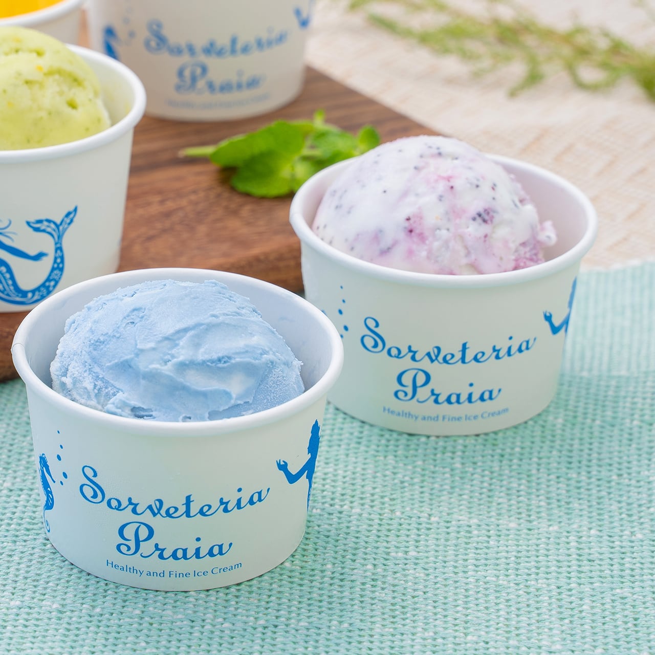 地域産の牛乳と天然塩を使った人気No.1フレーバー「九十九里の塩ミルク」は必ず含まれています。その他は、「いちごみるく」「キャラメルナッツ」「チョコレートブラウニー」などをはじめとする定番の人気フレーバーや、旬のフルーツやハーブを使った季節限定フレーバーのなかから、バランスよくおまかせでお詰めしてお届けいたします。