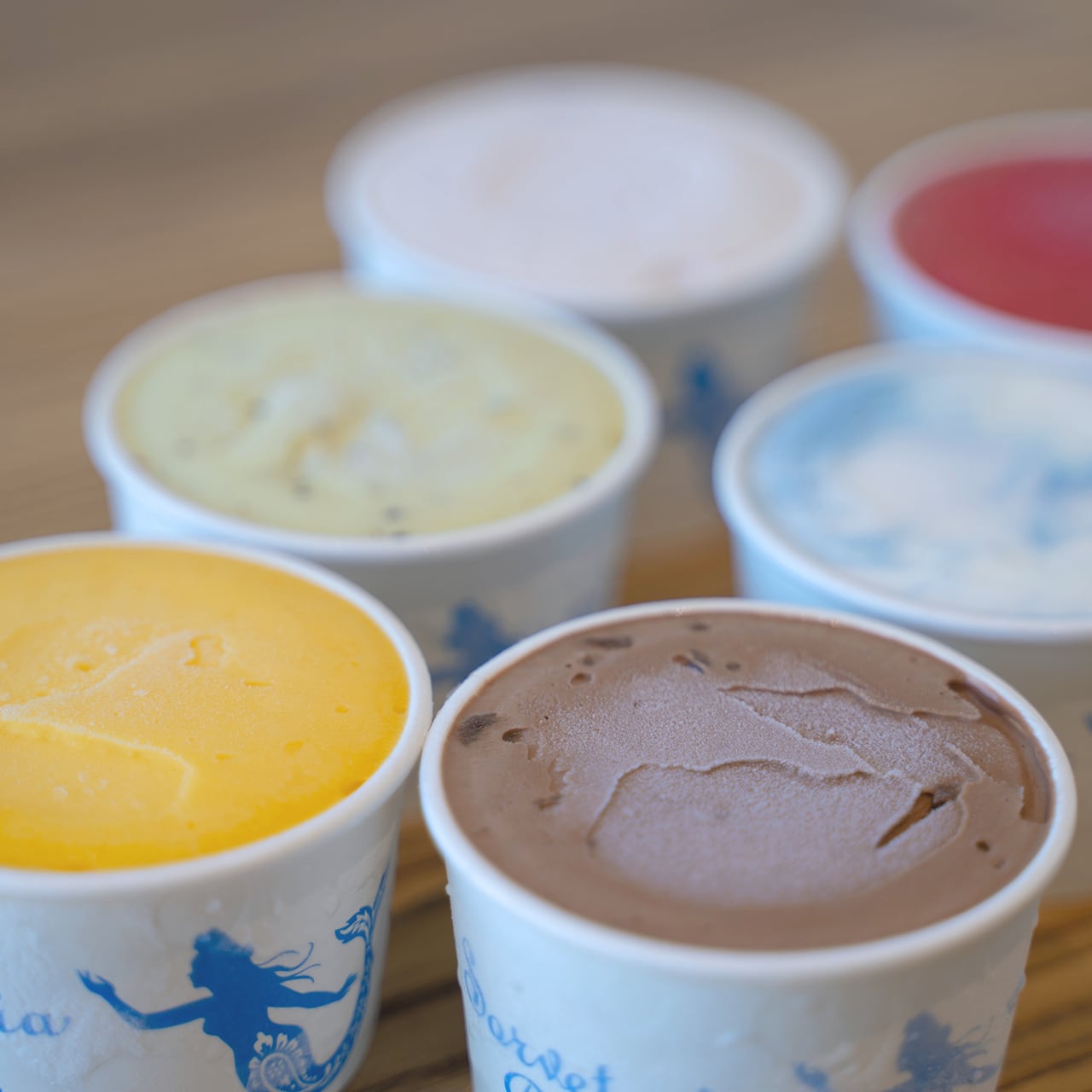 リッチなミルク系ジェラート4種類と、爽やかなソルベ系ジェラート2種類を組み合わせた計6個のセットです。